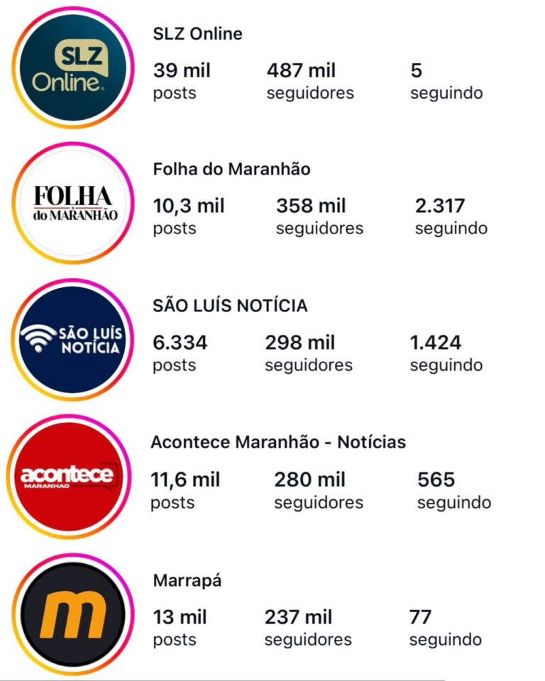 Quem domina o Instagram no Maranhão? Ranking mostra força dos portais de notícias O cenário digital do jornalismo maranhense segue em constante
