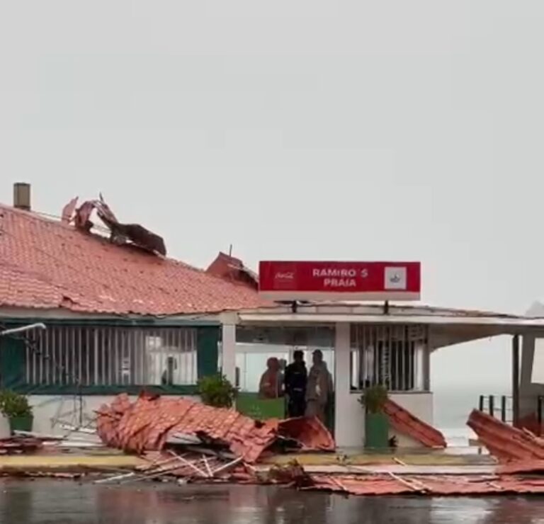 Chuva intensa derruba parte do telhado de bar na Avenida Litorânea Parte do telhado de um bar localizado na Avenida Litorânea desabou